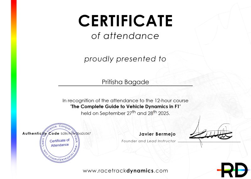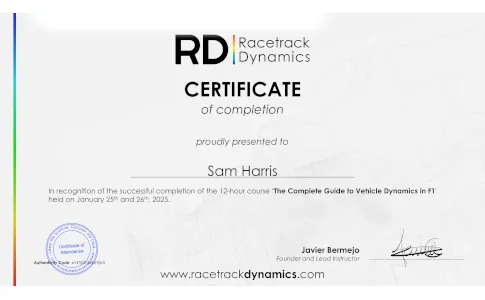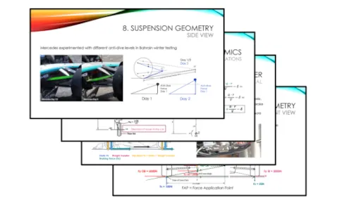 Through engaging lessons, practical examples, and insights from our experience in F1, you’ll gain a solid grasp of key concepts like tire dynamics, suspension geometry, weight transfer, and aerodynamics. No prior knowledge is required—just a passion for learning and a curiosity for the science that powers high-performance vehicles.
